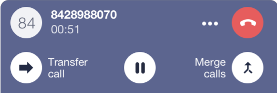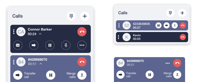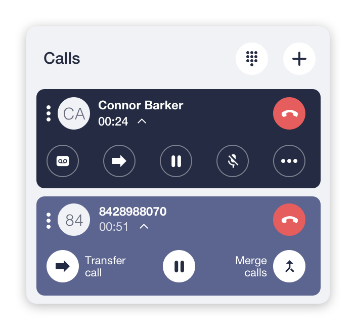 - A second active call panel appears while the first call is automatically placed on hold.