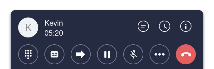 During a call, you can transfer a call, put a call on hold, create a conference, and much more. You can access those features by utilizing the UI components described below: