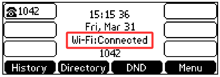 - On the idle screen, the Wi-Fi status displays as Connected.
